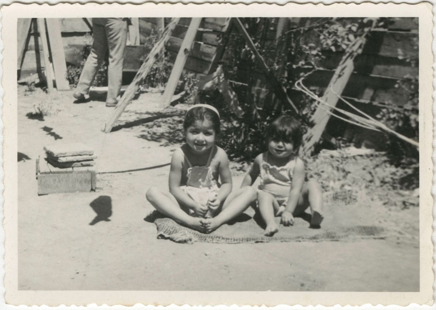 • En la imagen Ingrid Veloso Rosales y Sandra Veloso Rosales en el patio de casa de la abuela Juana Bustos. Legua Emergencia. Década de los 70.